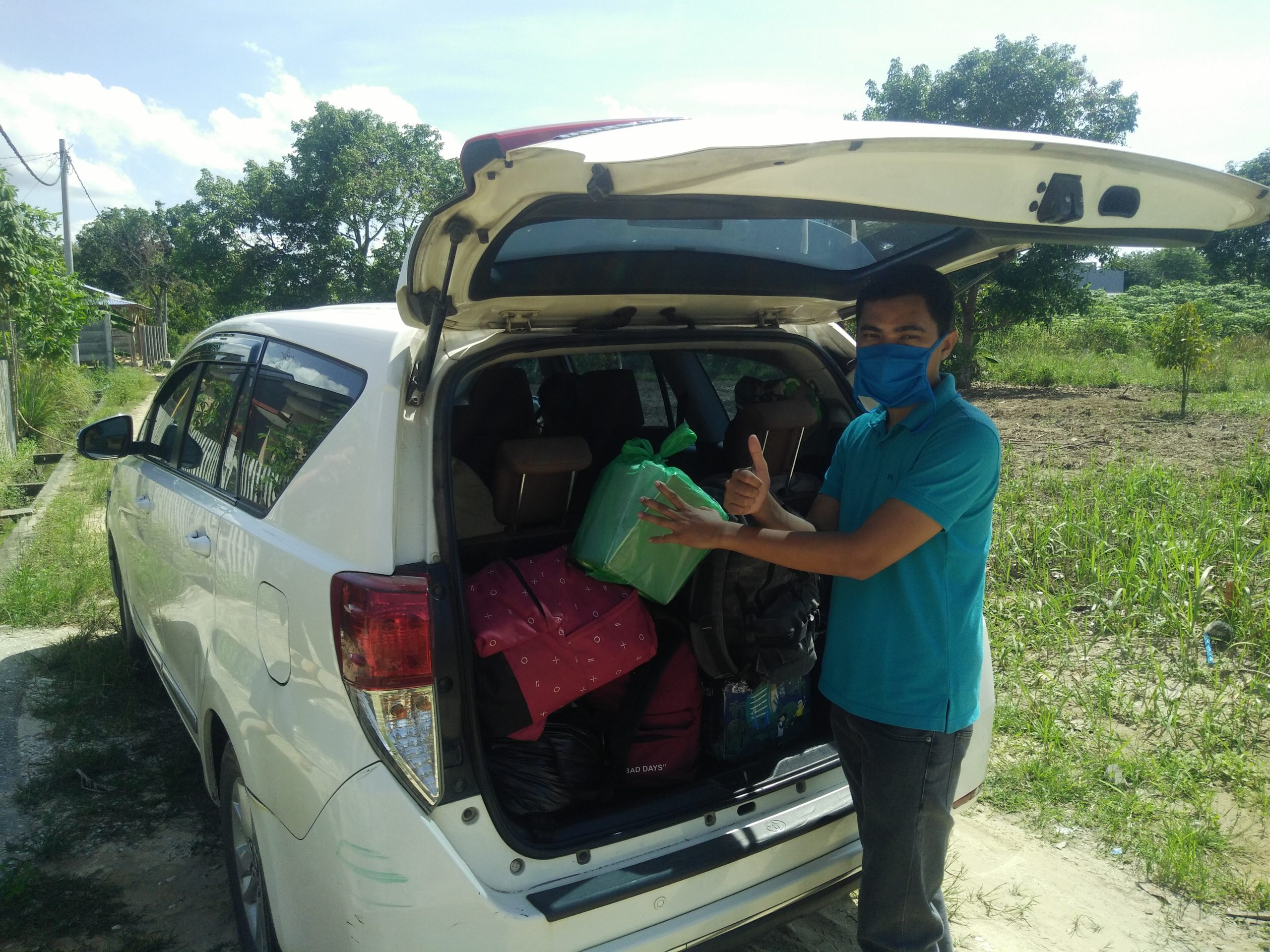 Saat Riky Ajo menjemput penumpang di Jalan Beringin 3, RT 2, RW 2 Kelurahan Sungai Sibam, Kecamatan Payung Sekaki, Pekanbaru. Penumpangnya mengatakan ” Kami sudah langganan cukup lama dengan Travel Riky Ajo, Apalagi saat wabah Covid , travel Riky Ajo ini ikut aturan pemerintah tentang memutus mata rantai Corona,” Ujar Hasnan salah seorang penumpang.