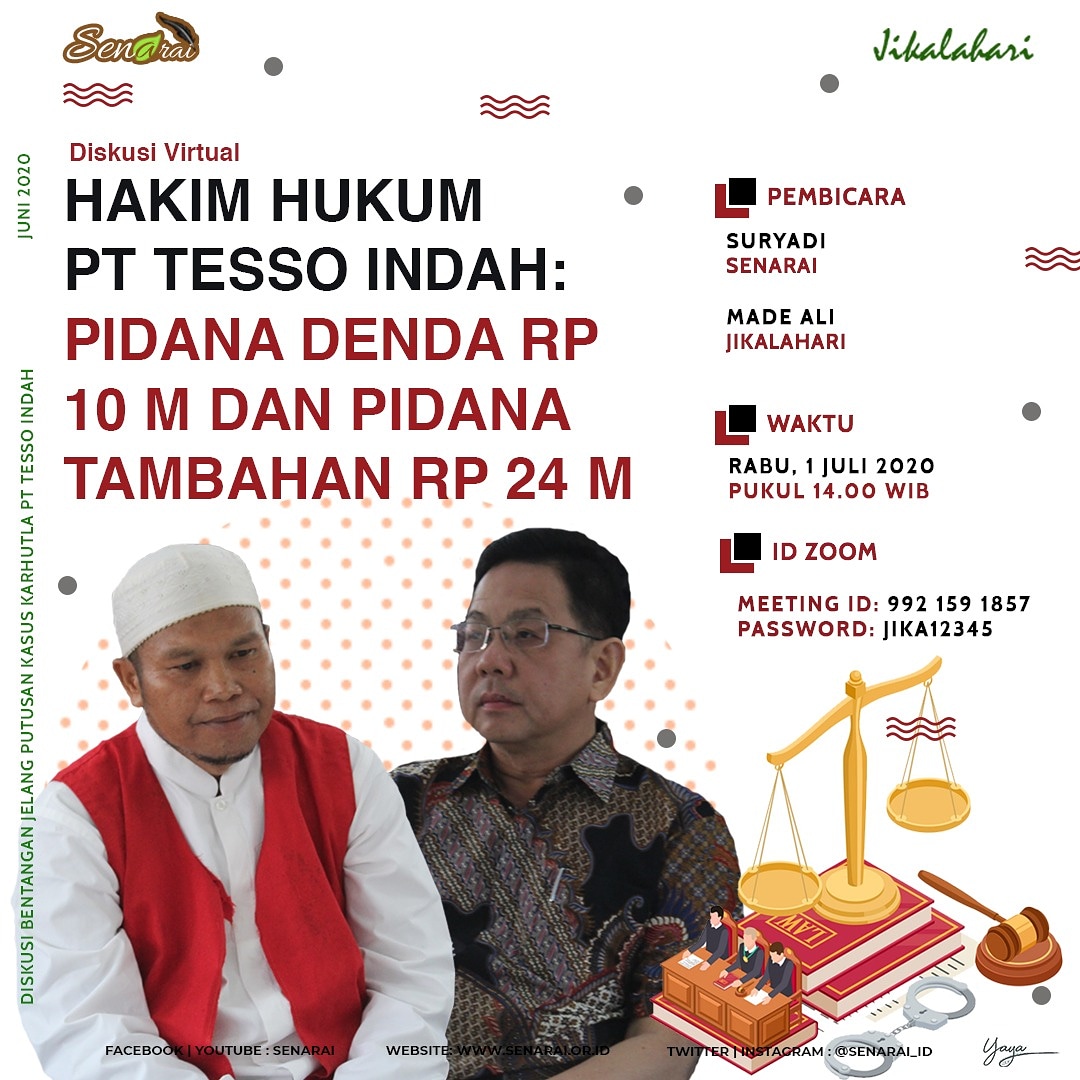 Diskusi Virtual, Hakim Hukum PT. TESSO INDAH: Pidana Denda Rp.10 M dan Pidana Tambahan 24 M
