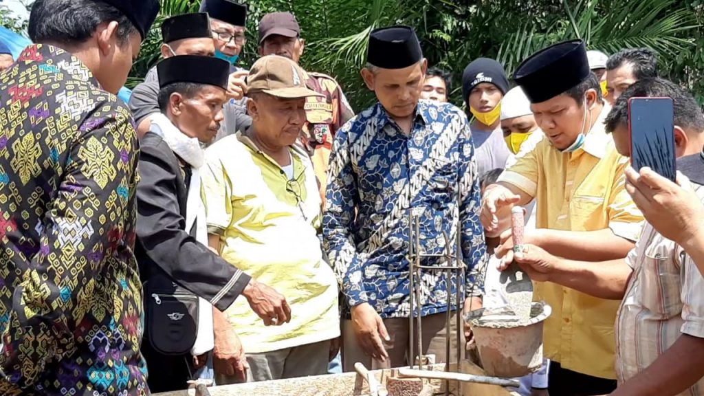 Ketua DPRD Kuansing Andi Putra SH MH yang langsung mengawali dimulainya pembangunan surau dengan ukuran 8×9 m2 itu, bersama ratusan warga.