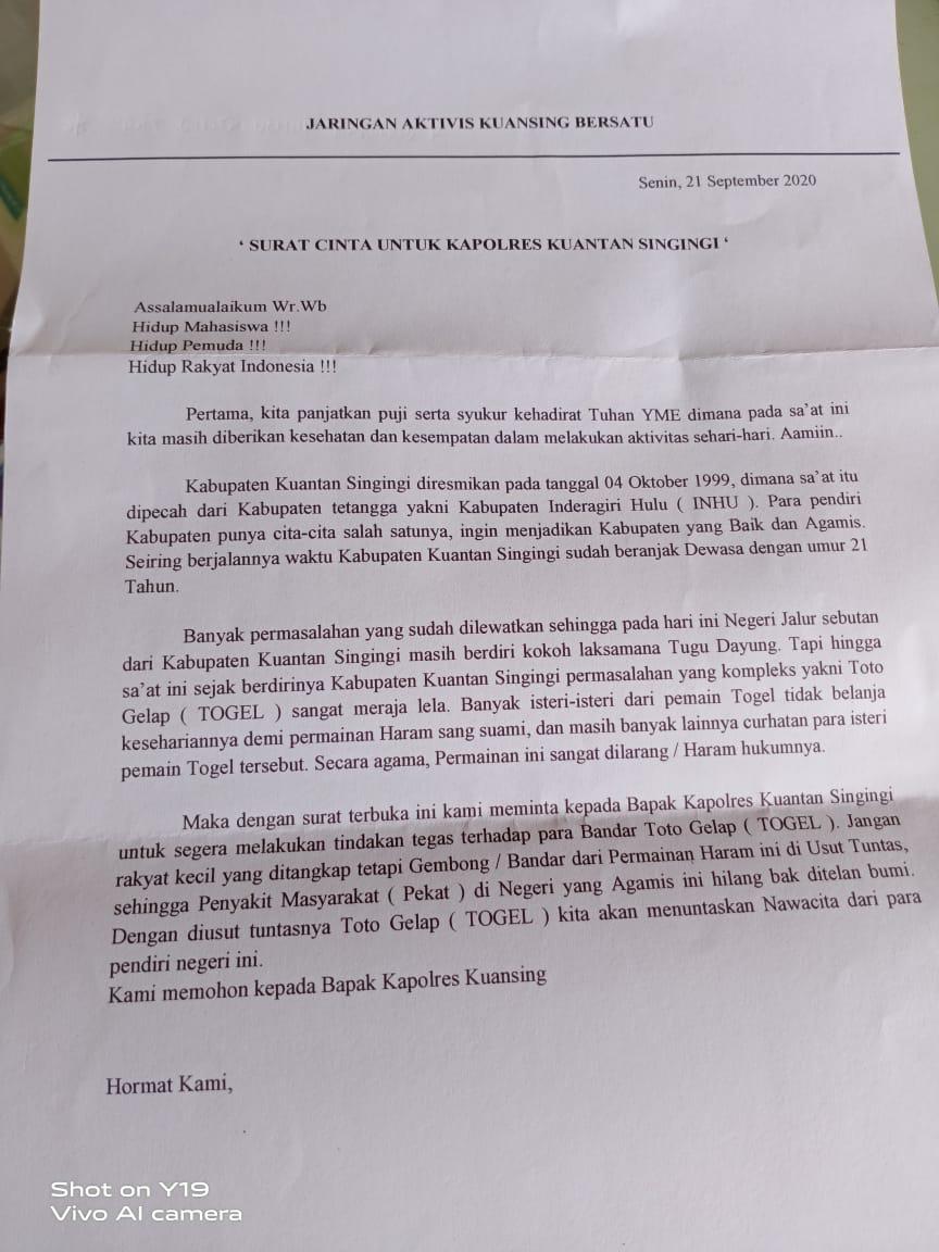 Jaringan Aktivis Kuansing, Kirim Surat Terbuka ke Polres Kuansing 2 min read DAERAH KUANSING Jaringan Aktivis Kuansing, Kirim Surat Terbuka ke Polres Kuansing Redaksi September 22, 2020 Read More