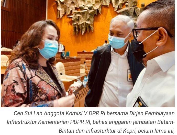 Untuk progres (kemajuan) program pembangunan jembatan Batam-Bintan, Cen Sui Lan menyatakan, bakal ada Rapat Dengar Pendapat (RDP) antara Komisi V DPR RI dan Dirjen Pembiayaan Infrakstruktur (PI) Kementerian PUPR, Rabu (31/3/21).