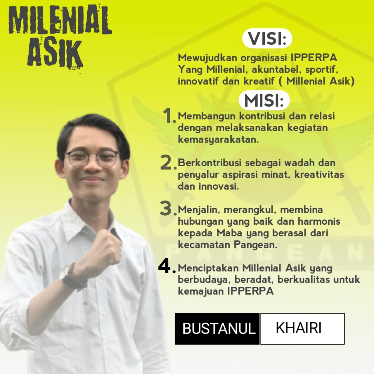 Tidak hanya itu, adapun Visi dan Misinya juga ia share di group tersebut. Visinya adalah mewujudkan organisasi IPPERPA yang milenial, akuntabel, sportif, innovatif dan kreatif (milenial asik).