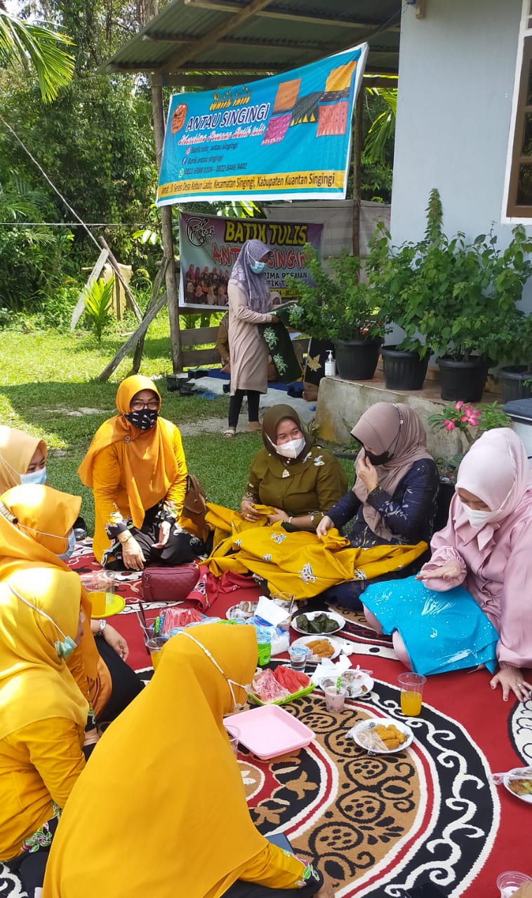 CENTRO RIAU Kuantan Singingi -Dalam rangka melakukan pembinaan terhadap pengembangan usaha batik rumahan, Senin 14/6/2021 Ketua TP PKK Kabupaten Kuantan Singingi Wella Mayangsari ,SE MSi beserta sejumlah pengurus mengunjungi 2 pengrajin batik sekaligus di desa Kebun Lado kecamatan Singingi.