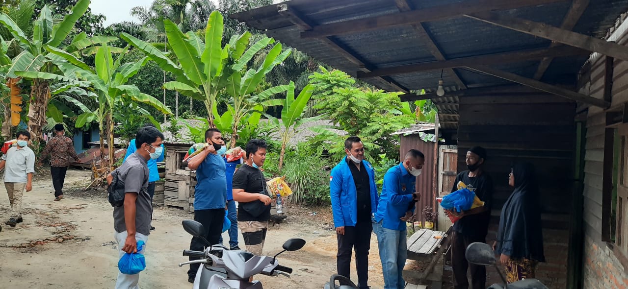 CENTRO Riau Pekanbaru-DPD KNPI RIAU membagikan sembako di Kelurahan Limbungan kecamatan Rumbai terhadap masyarakat yang terdampak PPKM.