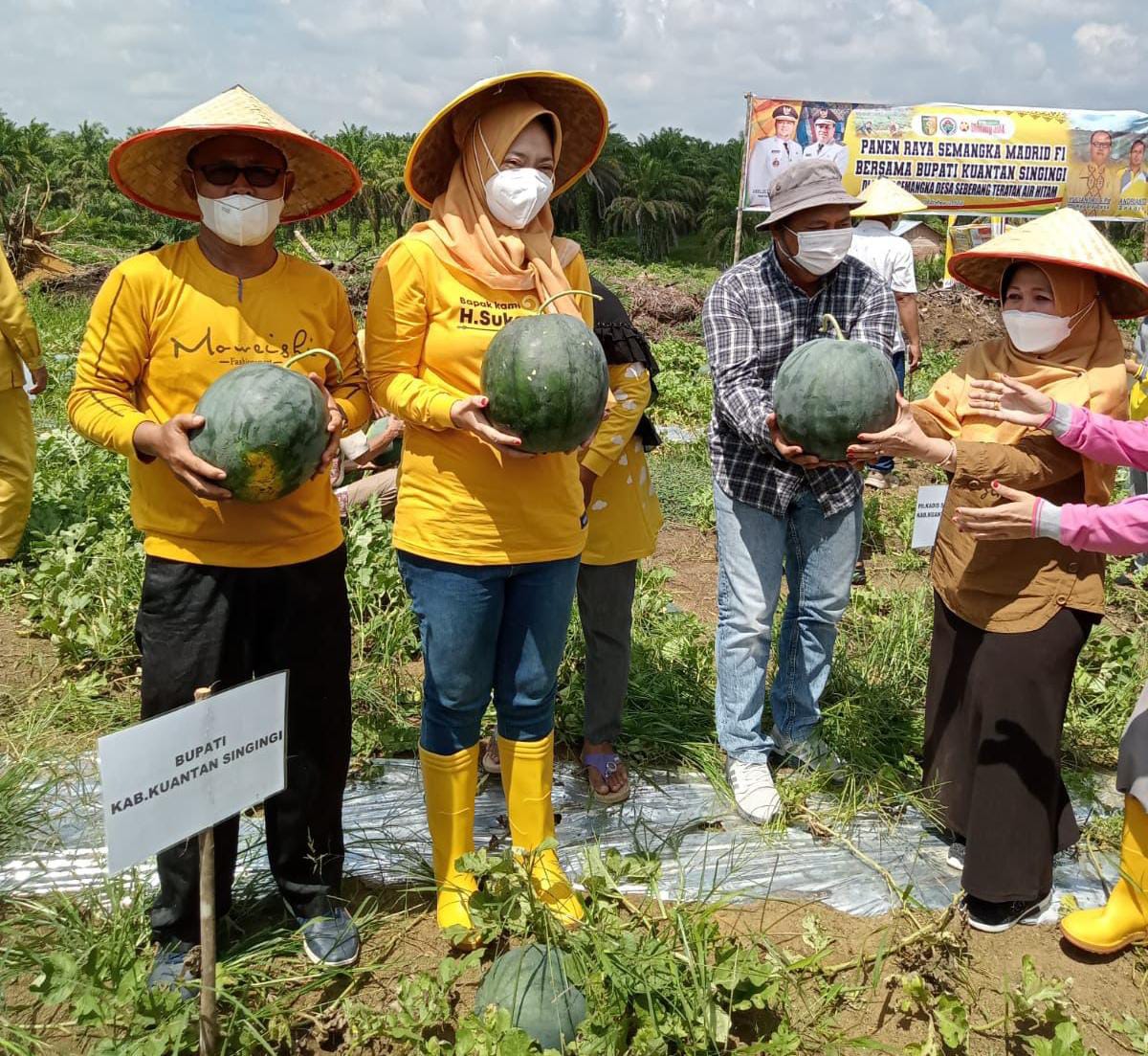 Puncaknya, kami mengungdang Ibu Ketua TP PKK Kuansing, Wella Mayangsari,SE MSi beserta jajaran, Ketua DWP Kabupaten, Fitri Yanti serta Ketua Komisi III DPRD Kuansing, Romi Alfisah Putra SE beserta Istri untuk hadir dan melakukan panen perdana semangka di desa kami akhir pekan lalu. Dirinya berharap, upaya dan hasil yang di dapat bisa memotivasi masyarakat desa nya, untuk mengembangkan produk pertanian ini, guna peningkatan kesejahteraan ekonomi masyarakat di tengah pandemi covid 19 saat ini, pungkasnya.