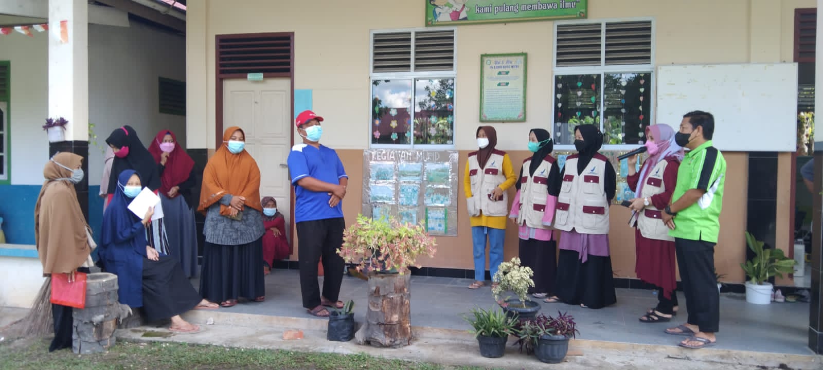 CENTRO RIAU PEKANBARU-Pengurus Anak Cabang Lembaga Dakwah Islamiyah Indonesia (PAC LDII), kelurahan Agrowisata mendukung program pemerintah dalam percepatan penanganan Covid-19 melalui Vaksinasi di Aula SD IT Luhuring Budi, RT.05/RW.05. Rumbai Barat, Pekanbaru, Riau (31/10/2021)