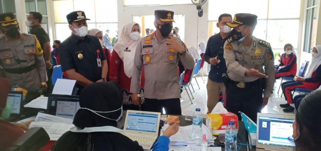 Selanjutnya, usai melounching aplikasi Bersama Selamatkan Riau ( BSR) Kapolda Riau Irjen Pol Agung Setya Imam Effendi SH SIK MSi meninjau langsung kegiatan Vaksinasi massal pelajar dan umum di gedung Dharma wanita Kuantan Singingi Kamis (18/11/2021).