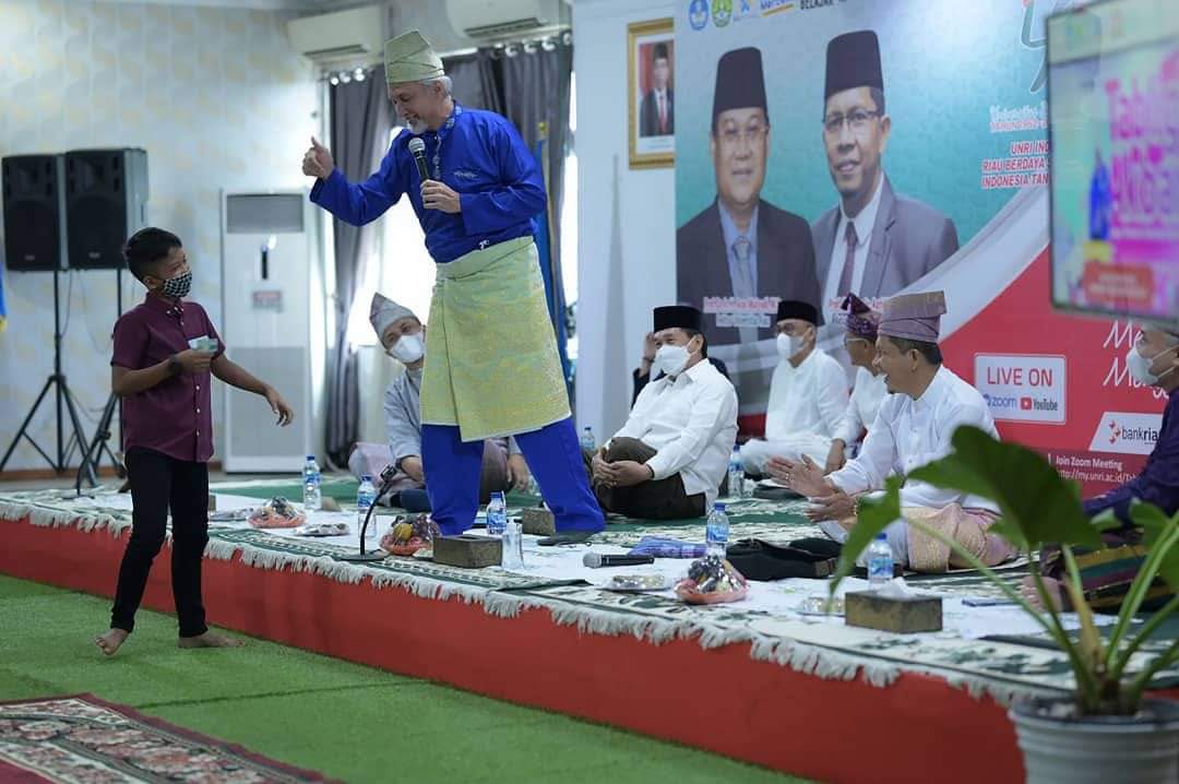 Adiwarman pada Tablig Akbar yang dilaksanakan secara haybird di Aula Siak Indrapura Gedung Raktorat Kampus Bina Widya UNRI ini, menguraikan lima kunci Meraih Sukses Dunia, Menggapai Keselamatan Akhirat kepada jemaah yang mengikuti kegiatan ini.