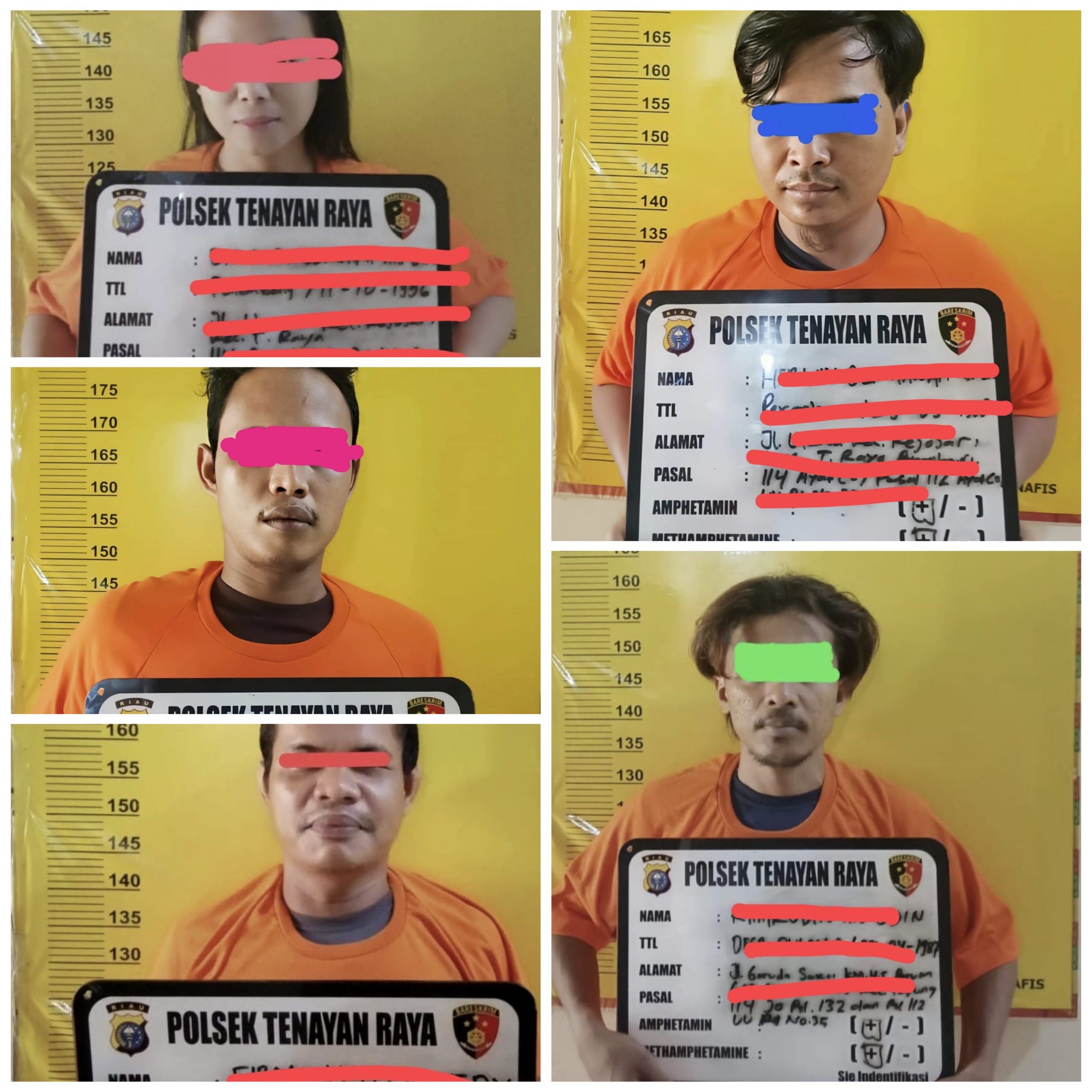 Kelima TSK diciduk jajaran Polsek Tenayan Raya dengan barang bukti yang memberatkan. Penangkapan dimulai dari DPO an.FE pada Selasa (22/2/2022) pukul 18.00 WIB di Hotel Grand Palance Jalan Kuantan Raya, Kelurahan Limapuluh. Dari tsk FE ini, diamankan satu unit handphone merk Nokia (warna hitam) dan dua bungkus plastik bening yang diduga narkotika jenis sabu dengan berat kotor 1 gram. Barang ini disita dalam berkas perkara tersangka atas nama MN.