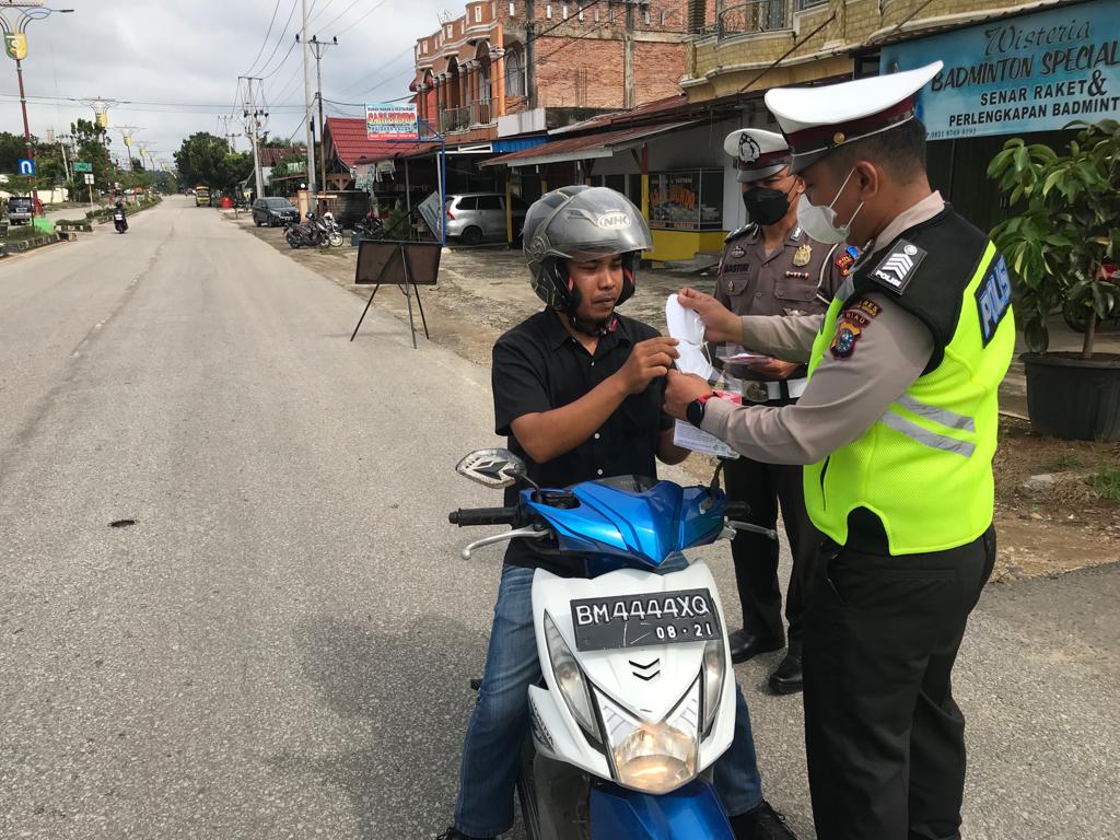” Benar tadi pagi kami melakukan pemeriksaan terhadap pengemudi yang melintas didepan kantor Lantas membagikan masker kepada pengemudi dan mengingat agar selalu mematuhi aturan berlalu lintas dan menjalankan prokes covid 19 ” ujar Bambang saat dikonfirmasi awak media.