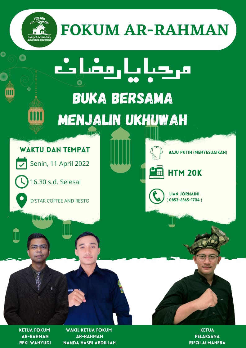 Centro Riau Pekanbaru – Memasuki puasa yang ke – 9 tepatnya Senin, 11 April 2022 segenap keluarga besar Fokum Ar – Rahman atau dahulunya Rumah Kontrakan akan diagendakan buka bersama.