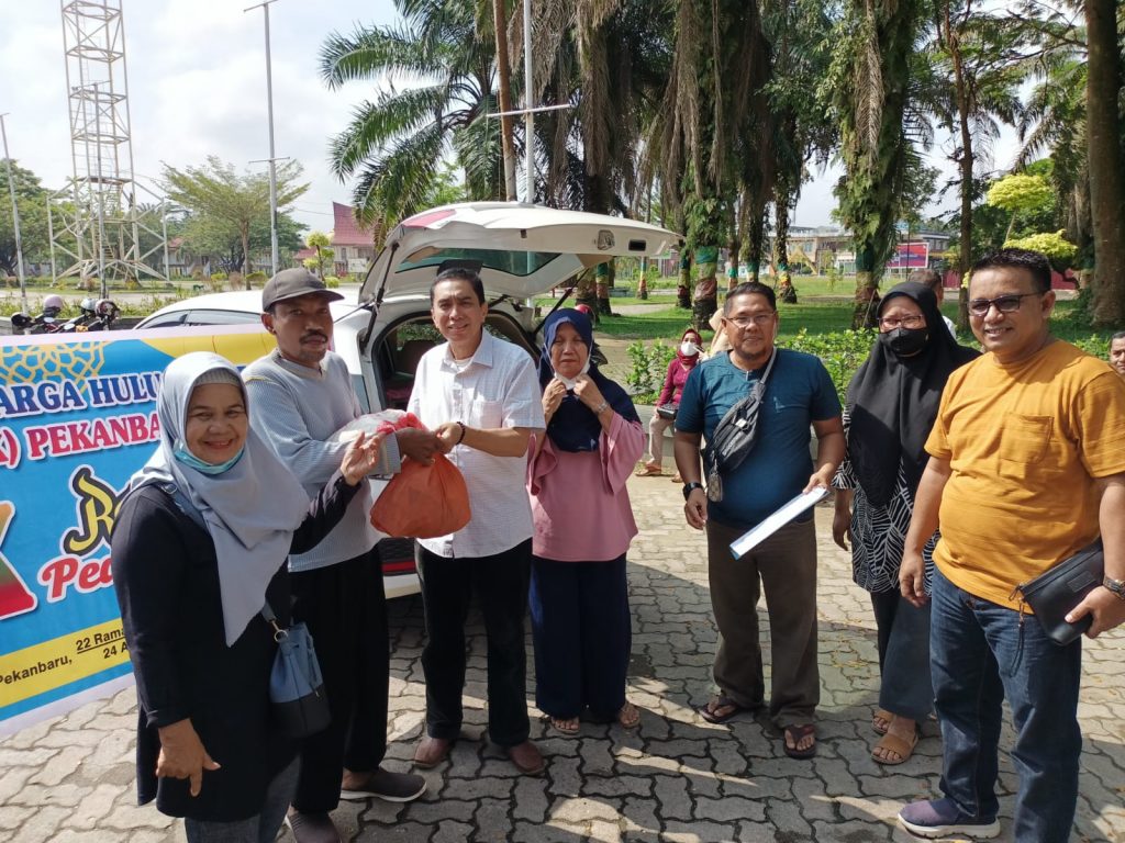 CENTRO RIAU Pekanbaru -Untuk kesekian kalinya, Ikatan Keluarga Hulu Kuantan (IKHK) Pekanbaru kembali berbagi memberikan santuni kepada segenap anggotanya. Kali ini, sebanyak 86 paket yang berisikan bahan kebutuhan pokok masyarakat, kegiatan ini dilaksanakan di halaman Gerbang Purna MTQ Jl. Jend. Sudirman Pekanbaru, Ahad, (24/4/2022)