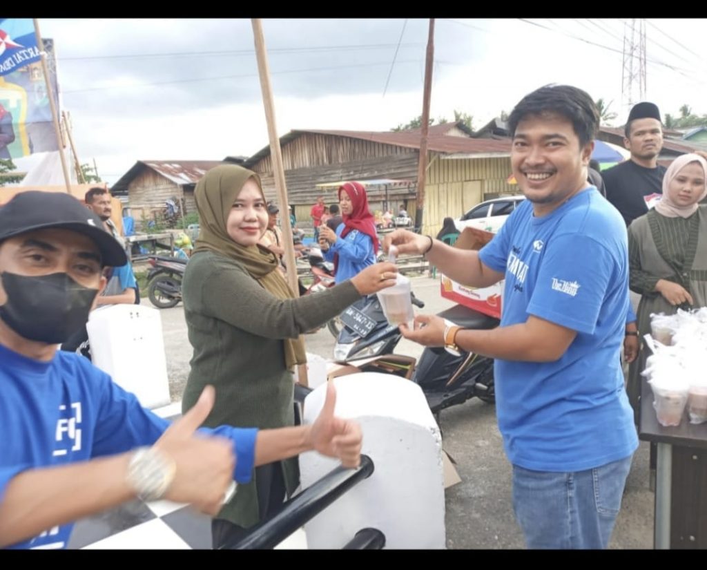CENTRO RIAU BASERAH, — Tiga Dewan Pimpinan Anak Cabang (DPAC) Partai Demokrat Kabupaten Kuantan Singingi (Kuansing) kompak membagikan takjil gratis ke masyarakat dan pengguna jalan, Jum’at (29/04/2022) petang di kawasan Tugu Pemuda Baserah Kecamatan Kuantan Hilir Kabupaten Kuantan Singingi (Kuansing), Riau.