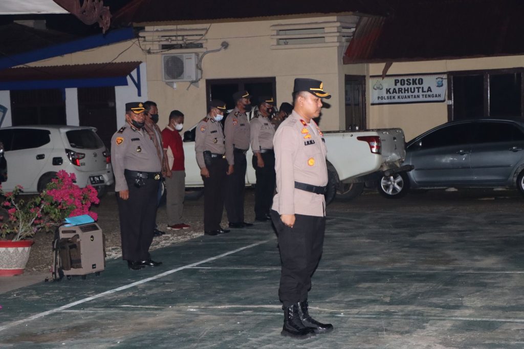 TELUK KUANTAN,- Wakapolres Kuansing Kompol Lilik Surianto, S.ST, SH, pimpin Apel dan patroli gabungan dalam rangka Antisipasi terjadinya Gangguan Kamtibmas di wilayah hukum polres Kuansing yakni Kegiatan Rutin Kepolisian Yang Ditingkatkan (KRYD) bertempat dihalaman Mapolsek Kuantan Tengah, Sabtu (11/06/2022) Pukul 22.00 WIB.