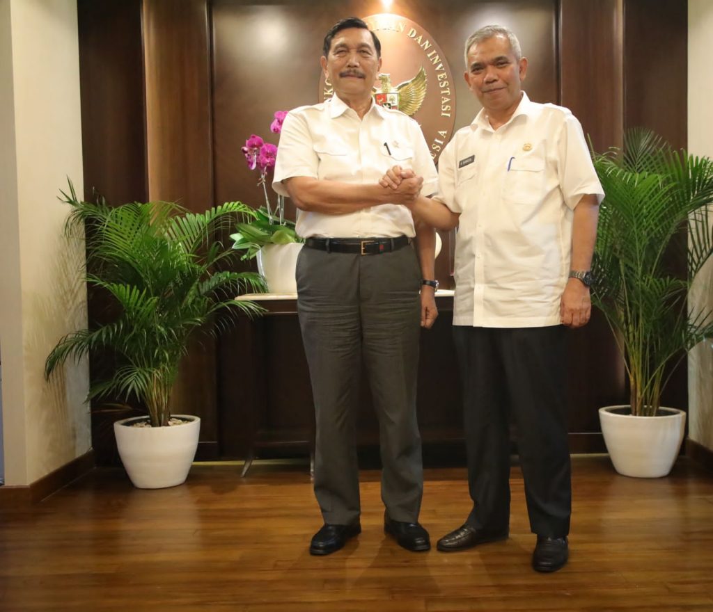 Kunjungan Pj. Bupati Kampar ke Ke Menteri koordinator Kemaritiman dan Investasi disambut langsung di Ruang Kerja Menko Marves di Jakarta, Selasa, 14 /06 Kemarin.