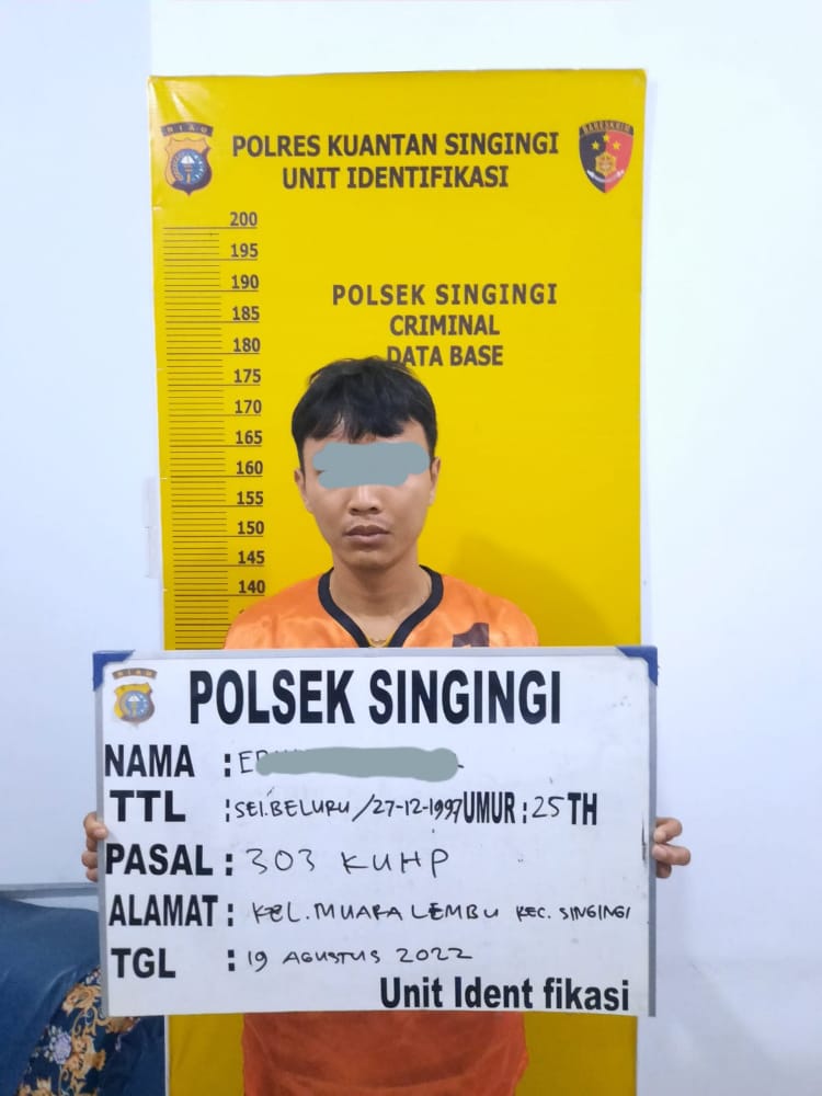 “Kepada pelaku ES di akan disangka melanggar Pasal 303 KUHP Pidana dengan ancaman pidana maksimal 10 tahun penjara ” ucap Kapolsek mengakhiri keterangannya