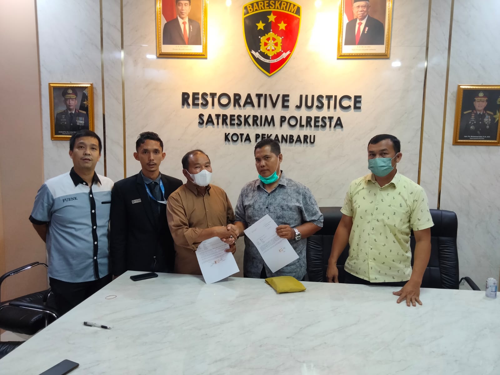 “Alhamdulillah, hari ini perkara pidana yang kami tangani lagi-lagi dapat kami selesaikan secara baik dan kekeluargaan, melalui Restorative Justice bertempat di kantor Polresta Pekanbaru,” sebut Afriadi Andika, kemarin.
