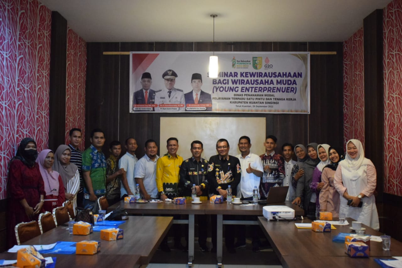 CENTRO RIAU Teluk Kuantan -Sebanyak 16 pelaku usaha dari berbagai latar belakang usaha, Kamis (29/9/22) mengikuti Seminar Kewirausahaan yang di Taja Dinas PMPTSP Naker Kuansing , di Teluk Kuantan .