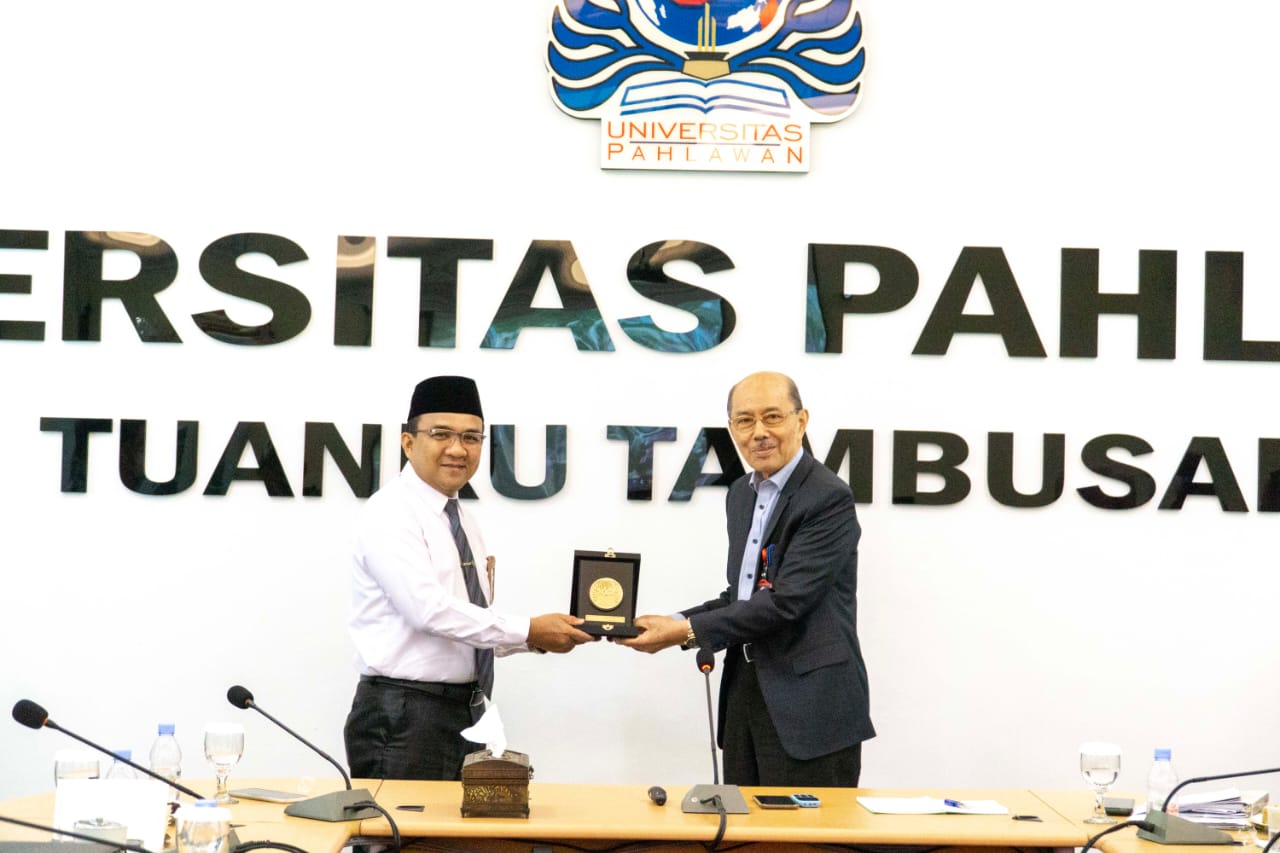 Rektor UP Tuanku Tambusai Prof. Dr. Amir Luthfi menyambut hangat kedatangan Rektor UNIKS Dr. H. Nopriadi, S.K.M., M.Kes beserta rombongan Wakil Rektor I M. Irwan, SE., MM dan Ketua Senat UNIKS yang juga merupakan Ketua Tim Perizinan Prodi baru, Elgamar, S.Kom., M.Kom,