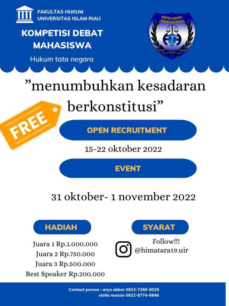 Selain itu, Bupati Himatara Arya Akbar Pratama mengatakan Ini Acara merupakan ajang debat bagi para mahasiswa hukum setingkat Fakultas Hukum Universitas Islam Riau.