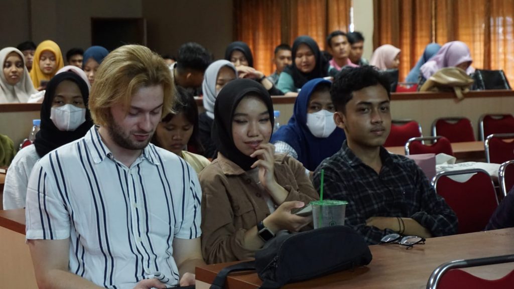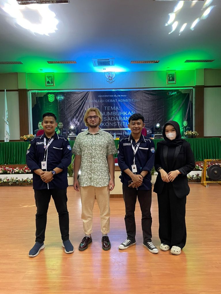 Tidak ketinggalan ternyata kompetisi debat konstitusi yang berlangsung selama 2 hari tersebut tampak hadir mahasiswa asal Jerman Julius Harder yang didampingi oleh Naurah Dwi Rengganis Riata Putri.