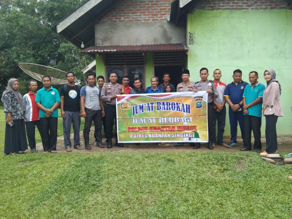 Centro Riau Lubuk Jambi -Kegiatan Rutinitas Personil Polsek Kuantan Mudik dalam setiap hari Jumat ialah berbagi kepada warga kurang mampu dengan tema “Jumat barokah”.