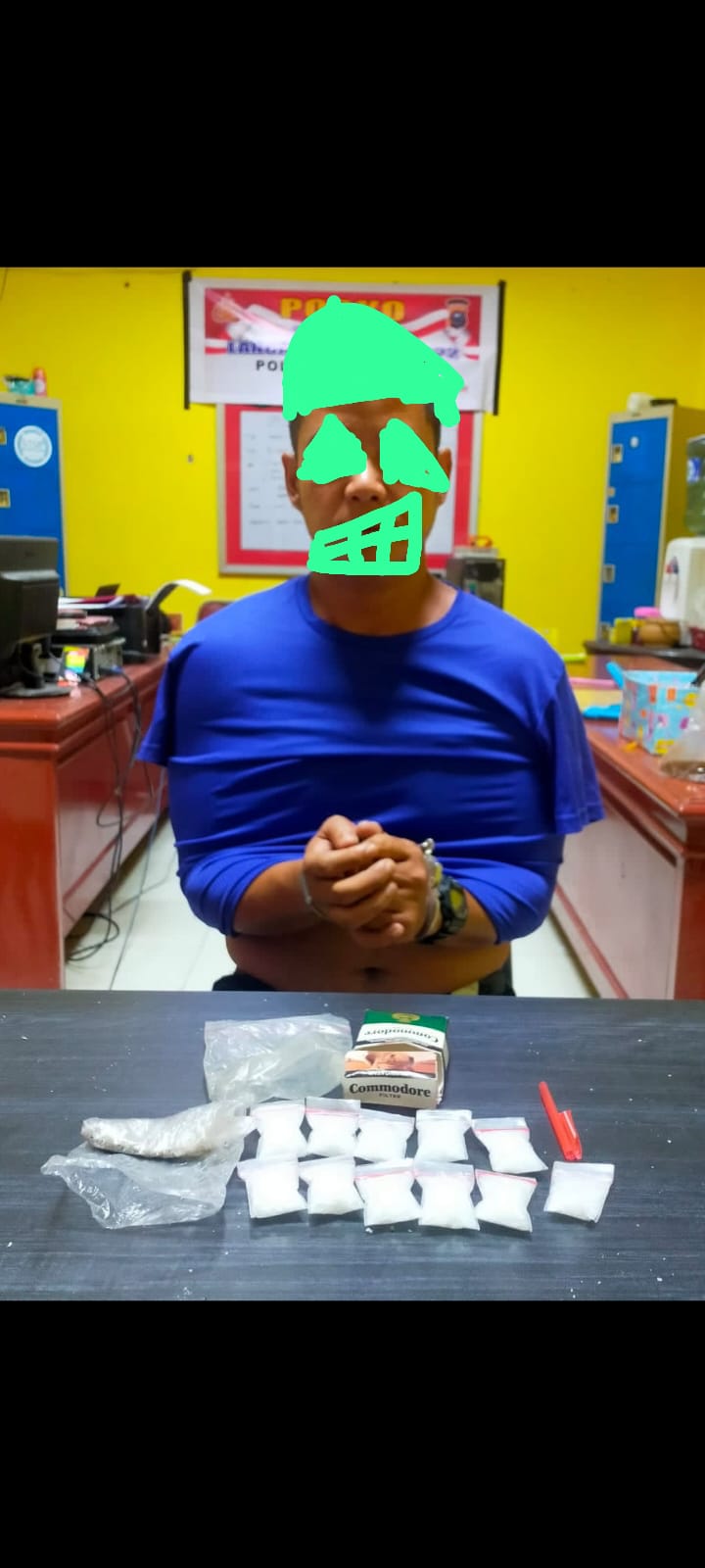 “Dari hasil penangkapan yang di pimpin oleh Kasat Res Narkoba IPTU TOMMY VARA BERLIN, S.Tr.K,M.M, kemudian dilakukan penggeledahan terhadap pelaku dan temukan pada pelaku yang pada saat itu hendak melarikan diri dari dalam kamar rumahnya dengan membawa barang bukti 11 (sebelas) paket plastik klip bening yang diduga berisikan butiran kristal diduga Narkotika jenis Sabu dan diakui bahwa 11 (sebelas) paket plastik bening diduga berisikan Narkotika jenis Shabu tersebut adalah milik nya yang didapat dari inisial B di Pekanbaru.