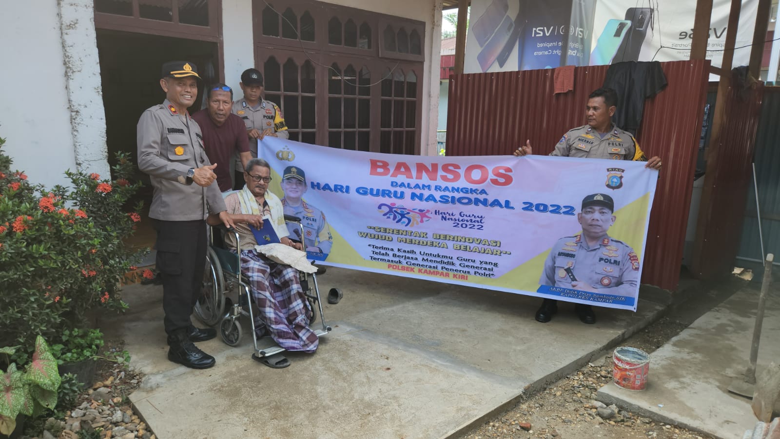 Centro Riau Kampar Kiri -Kegiatan Pembagian Bantuan Sosial dan Bantuan 2 Unit Kursi Roda oleh Polisi Sektor Kampar Kiri Kepada Guru yang kurang mampu / membutuhkan, dalam Rangka Hari Guru Nasional ke 77 tahun 2022 di wilayah Hukum Polsek Kampar Kiri. Riau. (25/11/2022)