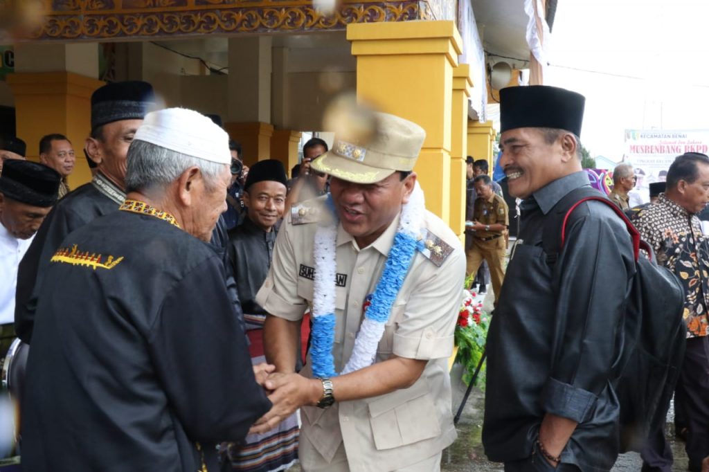 Suhardiman yang hadir didampingi Ketua TP PKK Hj. Yulia Herma, Anggota DPRD Riau, H Marwan Yohanis, Wakil Ketua DPRD Kuansing, Juprizal, SE dan Seluruh Kepala OPD disambut hangat pemerintah kecamatan Benai.