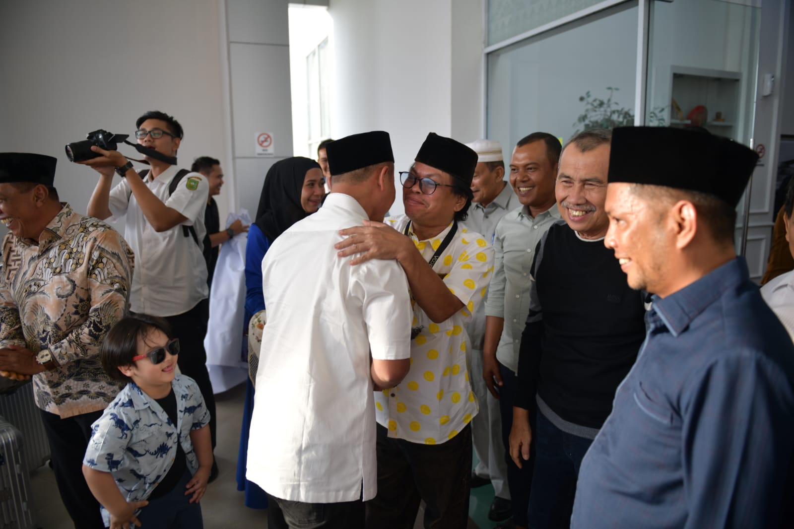 Sementara itu, selain mengucapkan selamat dan memabur beras kunyit, Gubernur Riau Syamsuar mengucapkan selamat dan berharap Agung Nugroho beserta istri menjadi haji yang mabrur. “Ya saya ucapkan selamat semoga beliau beserta istri menjadi haji yang mabrur,” ujar Gubri singkat.