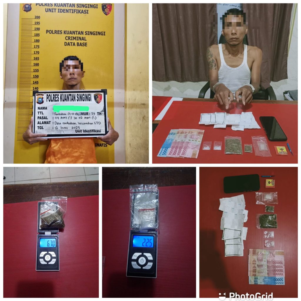 CENTRO RIAU TELUK KUANTAN,- Polres Kuansing melalui Sat Resnarkoba berhasil mengamankan 1 orang berinisial I (39) diduga tersangka tindak pidana narkotika jenis sabu dan daun ganja kering di Desa Rambahan Kecamatan Logas Tanah Darat, Kabupaten Kuansing, pada Rabu (12/07/2023) pukul 23.00 Wib.