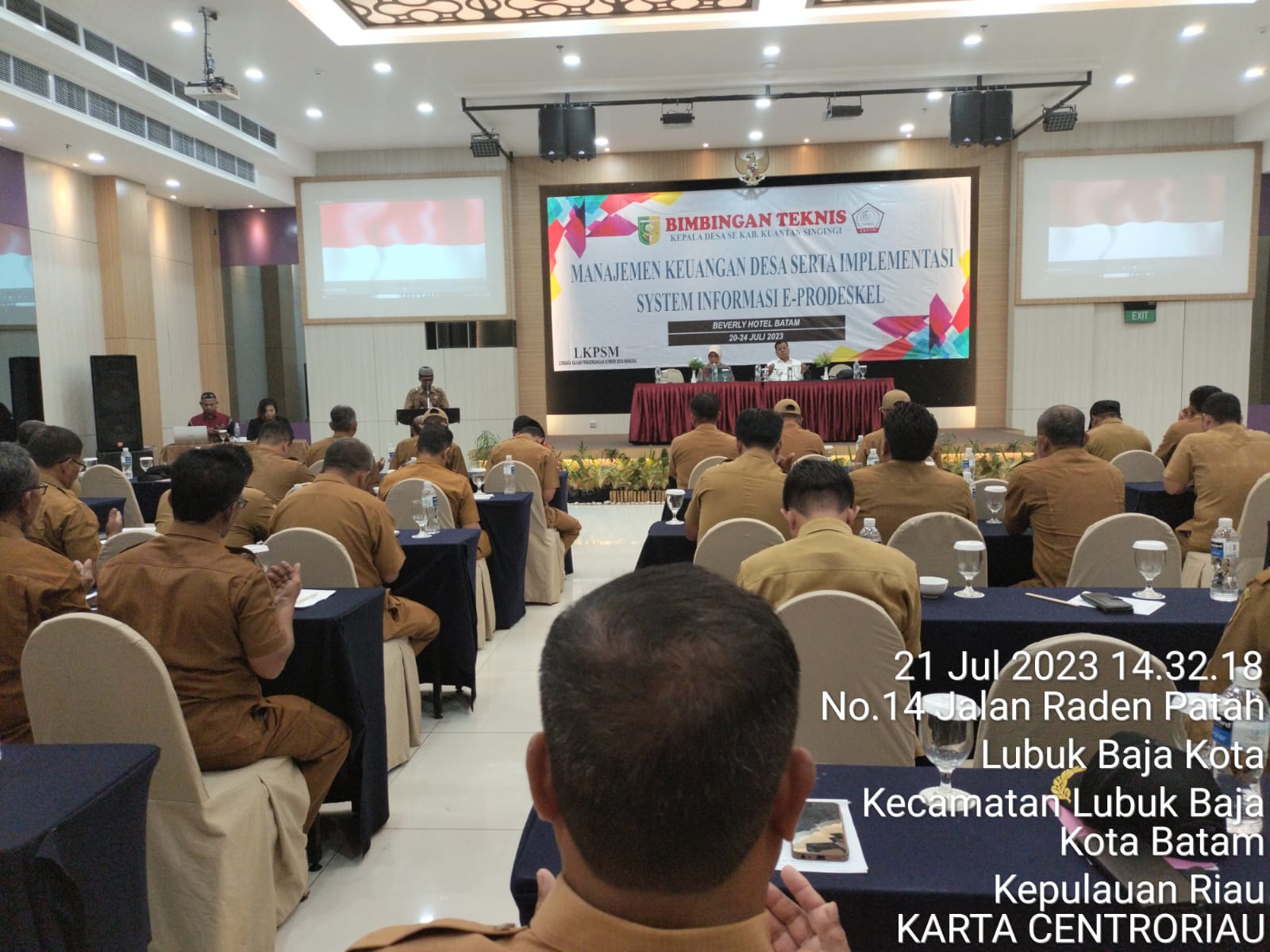 Kegiatan Bimtek Kepala Desa Se-kabupaten Kuansing di Batam tentang Manajemen Keuangan Desa serta Implementasi profil desa kelurahan (E-Prodeskel) dihadiri berbagai narasumber salahsatunya, Ir. Irwan Oemar, M.Si, Kapolres Kuansing AKBP Pangucap Priyo Soegito, S.I.K, MH diwakili KBO Reskrim IPDA Ainur Rasyid, SH, Kemendes RI, dan kegiatan Bimtek Kades dibiayai oleh APBN serta dari Swadaya.(Krt)
