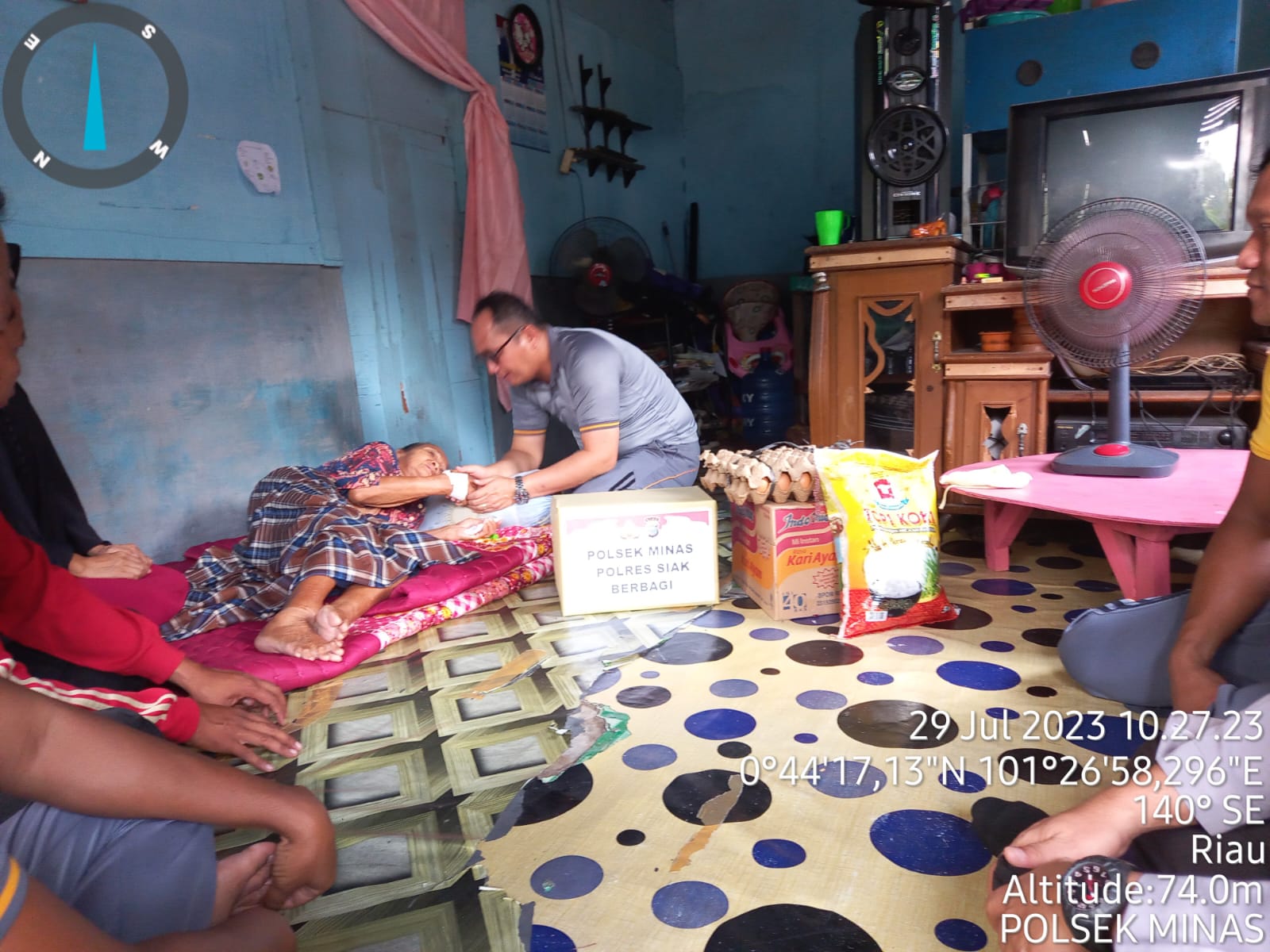 Kapolres Siak AKBP ASEP SUJARWADI,S.I.K,M,Si melalui Kapolsek Minas mengatakan bahwa Paket Sembako tersebut diserahkan kepada dua orang warga yang saat ini memang sedang membutuhkan kepedulian kita semua. Adapun warga tersebut adalah Ibu L (47 th), yang sedang sakit kanker paru paru, kemudian Ibu A (68 th) yang sdg sakit saraf tulang punggung.