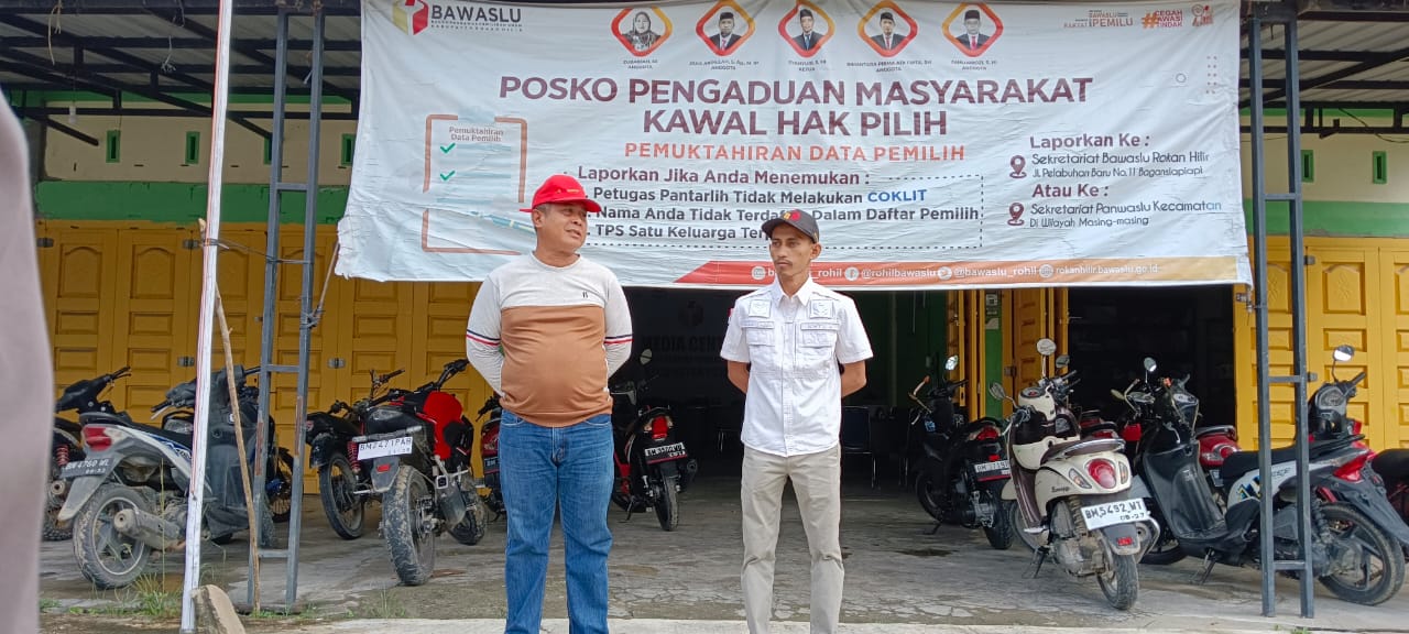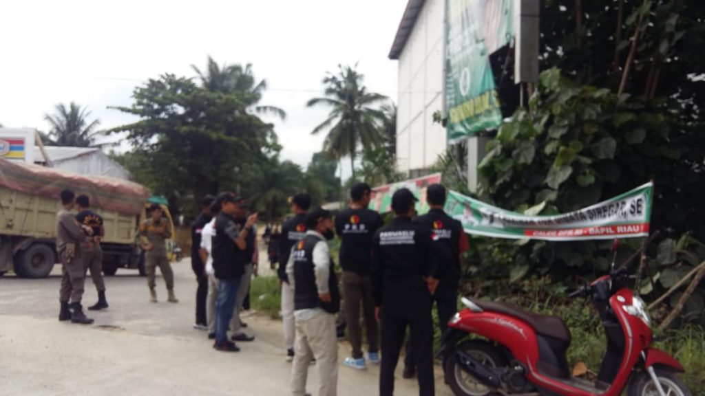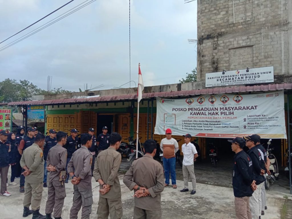 Rokan Hilir – Ketua Panwaslu Kecamatan Pujud Muammar Dini Kurniawan memimpin Apel Siaga Penertiban Alat Peraga Sosialisasi (APS) yang menyerupai Alat Peraga Kampanye (APK) di halaman kantor panwaslu Kecamatan Pujud, pada minggu (05/11/2023).