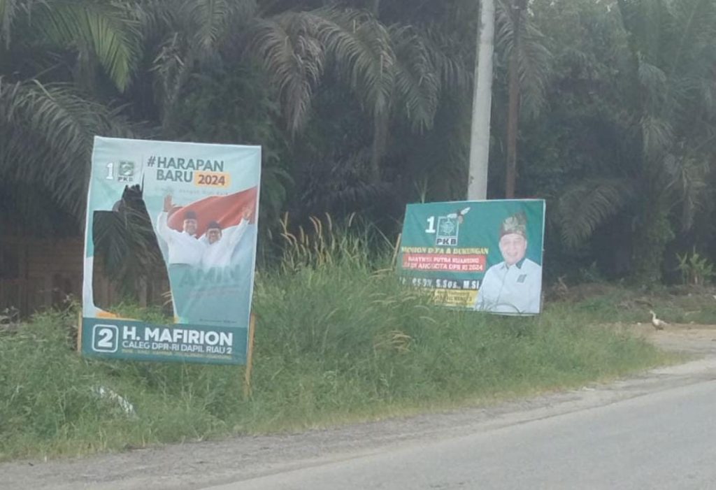Centro Riau Kuansing – Terpantau di Kecamatan Inuman dan kecamatan Kuantan Hilir, kabupaten Kuansing, baliho Caleg DPR RI selain Aherson nomor urut 4 dari PKB dirusak orang tidak dikenal (OTK), Baliho rusak terpantau oleh Masyarakat pada, Ahad, 7 Januari 2024. Siang WIB.