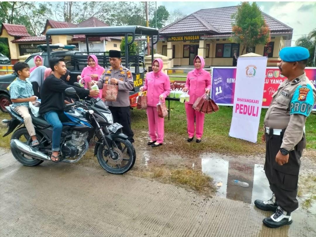 AKP Zulfatriano SH MH menyebutkan, dirinya beserta personil Polsek Pangean dan Bhayangkari membagikan takjil dan memberikan santunan kepada anak yatim serta berbuka puasa.