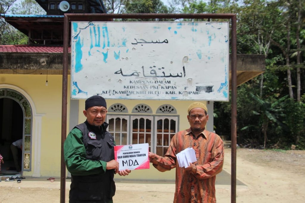 Para relawan yang berjumlah 35 orang, dari berbagai lembaga dan komunitas di antaranya Donasi Rumah Tahfizh (DRT), Sinergi Bangun Peradaban (SIGAP), IDI Kampar, Landrover Club Riau (LRCR), Pekanbaru 4WD Adventure (P4WDA), dan Komunitas Cinta Masjid, bersatu dalam sebuah kegiatan bersama menggunakan 7 unit armada 4×4, 3 unit motor trail dan jumlah personel sebanyak 35 orang.