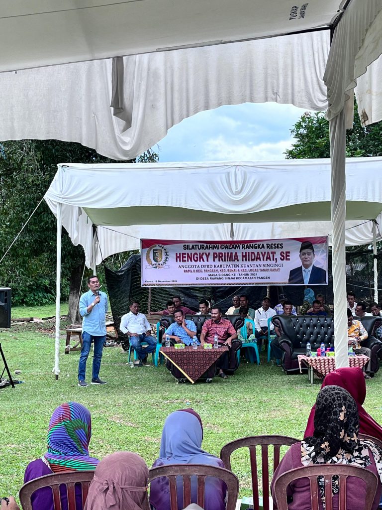 Centro Riau Pangean -Anggota DPRD Kabupaten Kuantan Singingi dari Fraksi Gerindra Hengki Prima Hidayat, SE ‘mangaranduik’/membawa/mengumpulkan aspirasi warga pada melaksanakan reses masa sidang ke 1 tahun 2024-2025 di wilayah Dapilnya, tepatnya di desa Rawang Binjai dan Pulau Dore, kecamatan Pangean, Pada tanggal 20-21 Desember 2024.