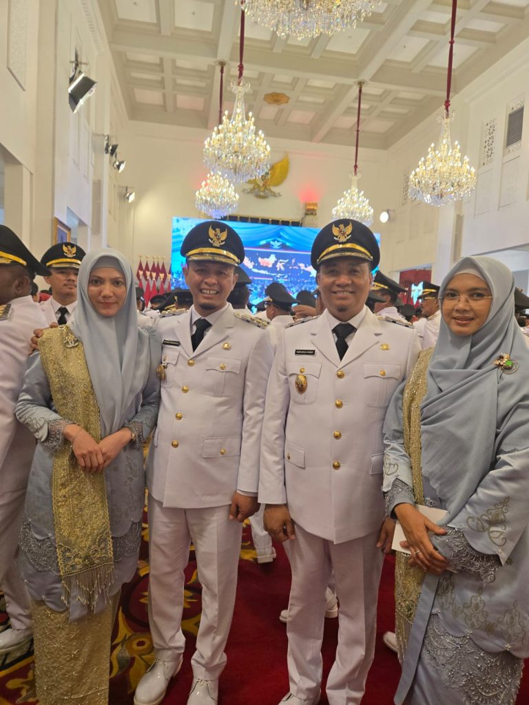 Surat Keputusan Mendagri Nomor 100.2.1.3-221 Tahun 2025 dan nomor 100.2.1.3-17179 Tahun 2025 tentang pengesahan dan pengangkatan kepala daerah dan wakil kepala daerah pada tingkat kabupaten dan kota hasil Pilkada serentak tahun 2024 masa jabatan tahun 2025-2030 itu dibacakan oleh Sekretaris Jenderal Kementerian Dalam Negeri RI.