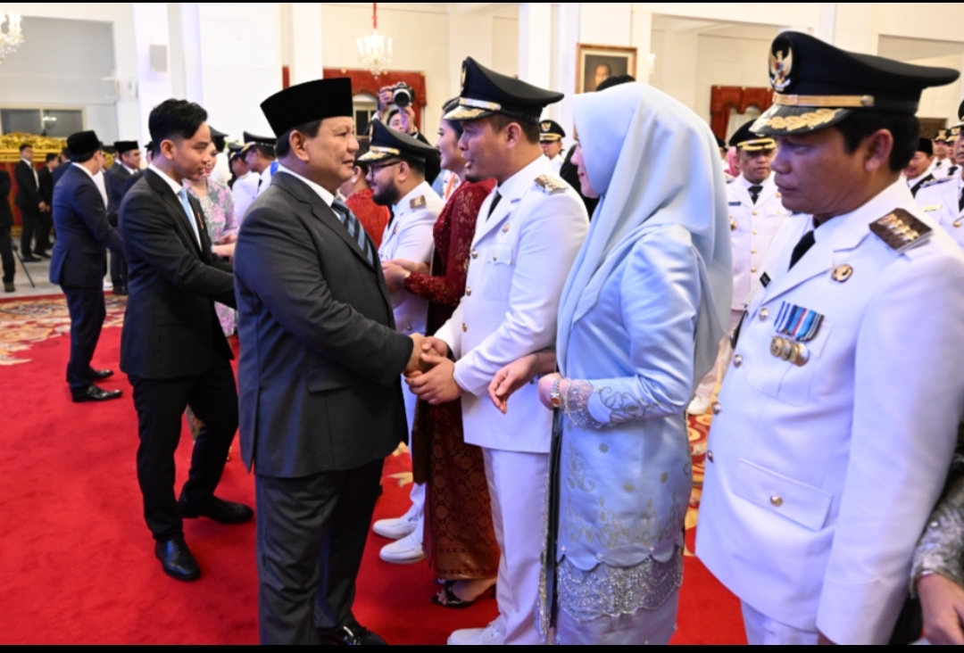 CentroRiau.id- Jakarta-Presiden Republik Indonesia (RI) Prabowo Subianto resmi melantik Agung Nugroho dan Markarius Anwar sebagai Walikota dan Wakil Walikota Pekanbaru masa jabatan tahun 2025-2030 di Istana Kepresidenan, Jakarta, Kamis (20/2/2025).