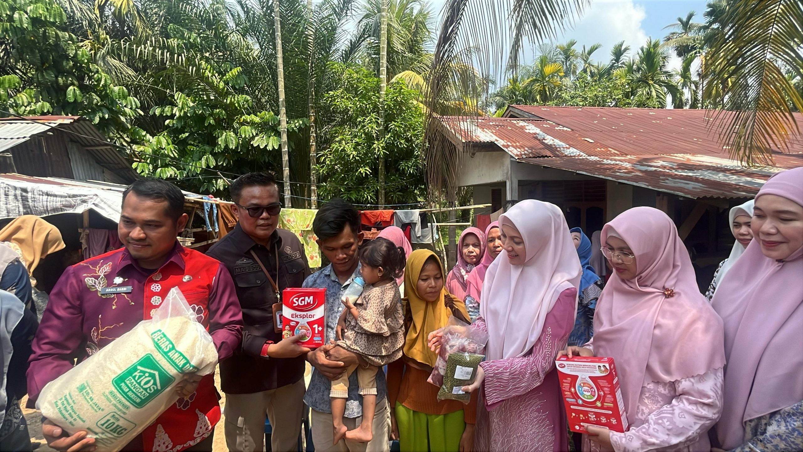Sementara itu, salah satu orang tua penerima bantuan, Cici, menceritakan pengalamannya. Dua dari tiga anaknya, mengalami stunting, yaitu Hasnah (2 tahun 3 bulan) dan Daffa (1 tahun 2 bulan).