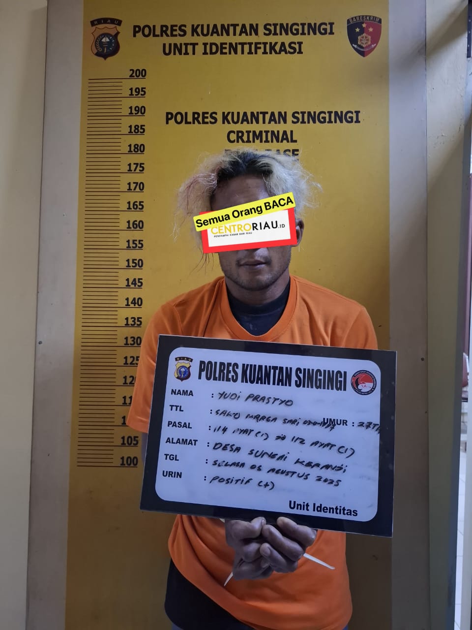 CENTRO RIAU KUANSING – Satuan Narkoba Polisi Resort Kuansing kembali mengungkap peredaran narkotika jenis sabu-sabu di wilayah hukumnya desa Sungai Keranji, kecamatan Singingi, kabupaten Kuansing. Tim Opsnal Polisi tersebut lebih dikenal dengan sebutan nama ‘Tim Mata Elang Polres Kuansing’ itu menangkap seorang tersangka berinisial YP (28thn) yang diduga sebagai pengedar narkotika jenis sabu. Penangkapan YP dilakukan di rumahnya bersama barang bukti, pada Selasa, 5 Agustus 2025.